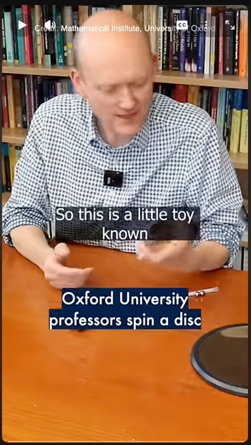It is mesmerising. It is abstract. It is stark. The frequency of precession gravitates towards infinity before finally twanging to a resounding stop. And then you see that the disc once standing is now flat. It is also eerily scary.